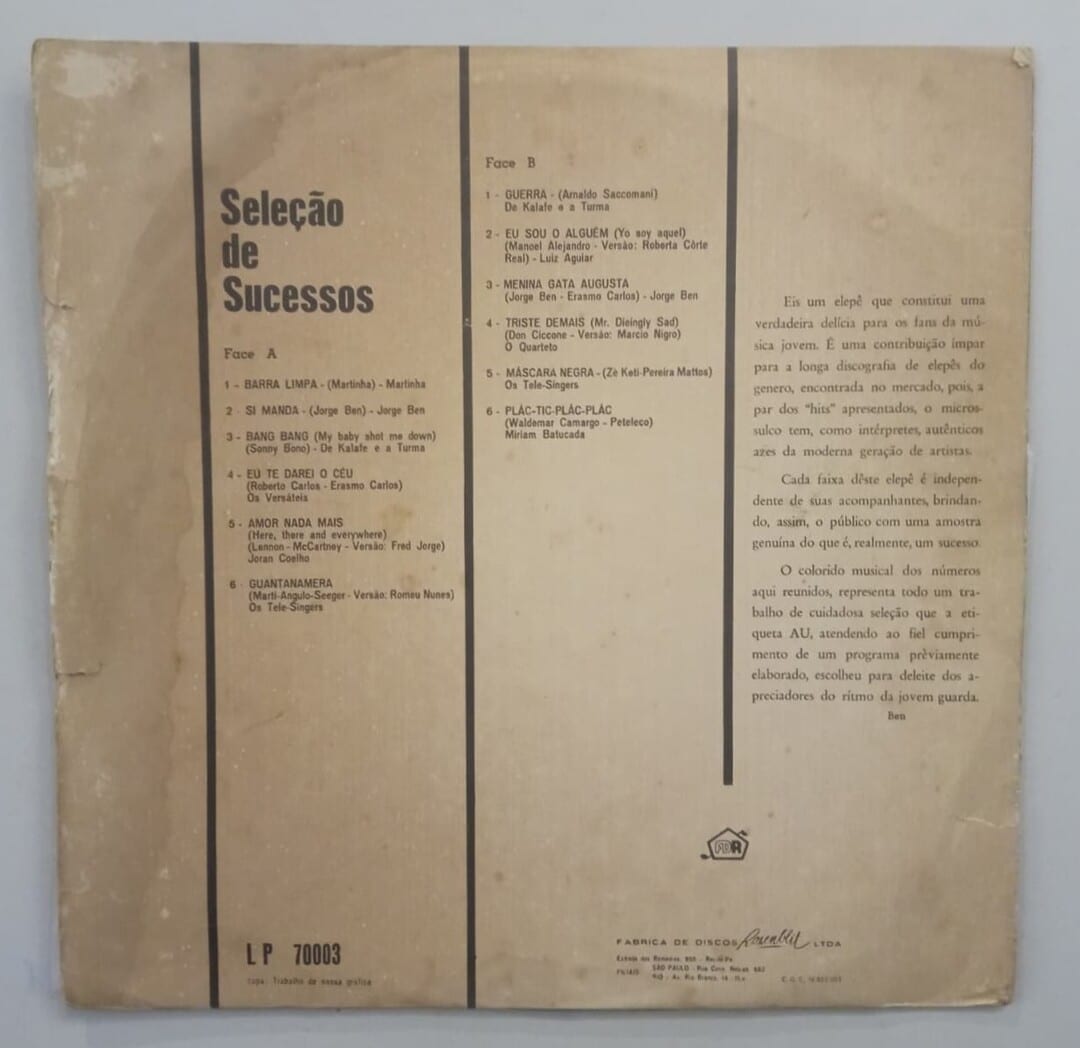 G+ – Bom estado. Disco com muitas marcas e ruído intrusivo. Não postaremos muitos discos nesse estado, com raras exceções.